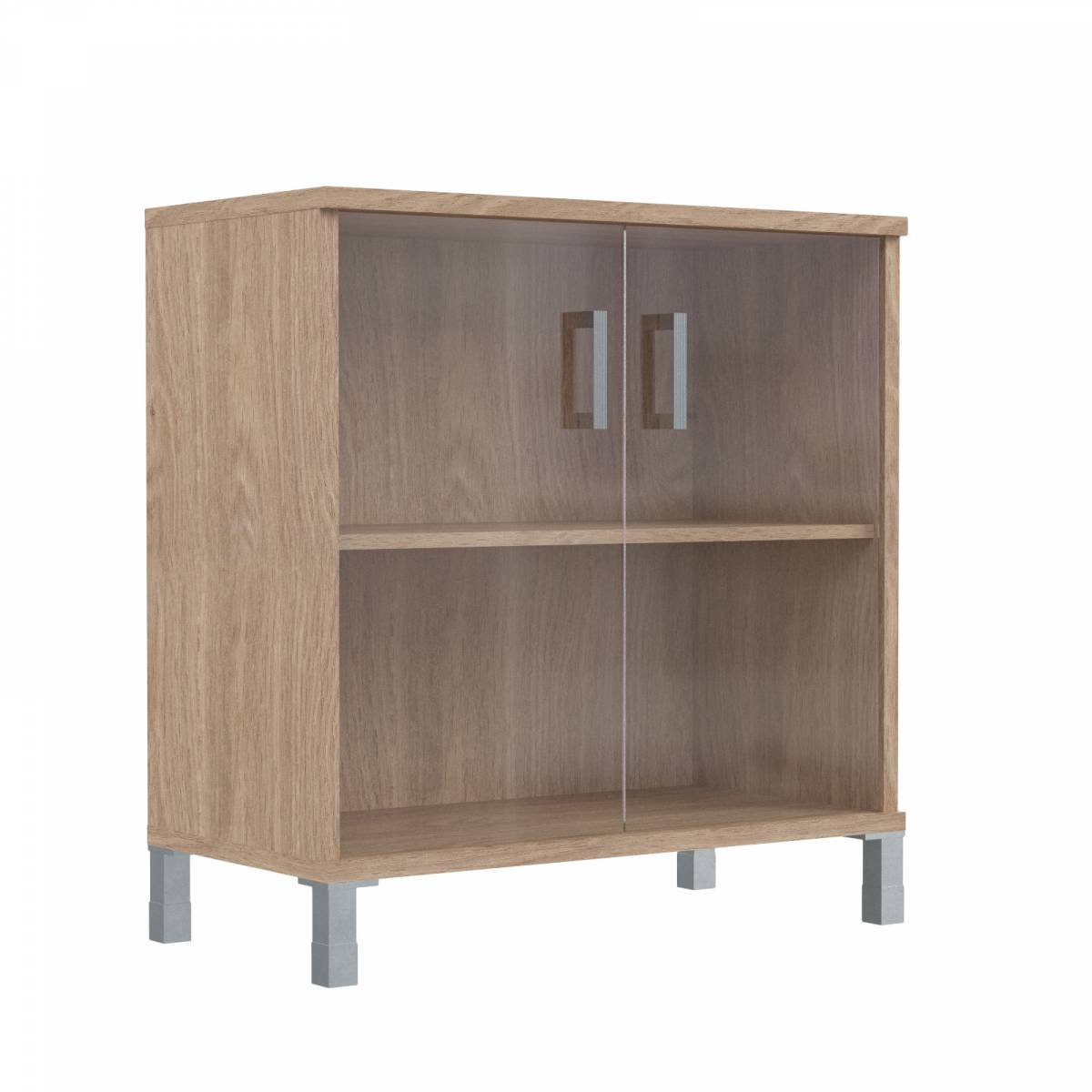 Шкаф низкий со стеклянными дверьми в AL-рамке B 410.4 Дуб Девон 900х450х920