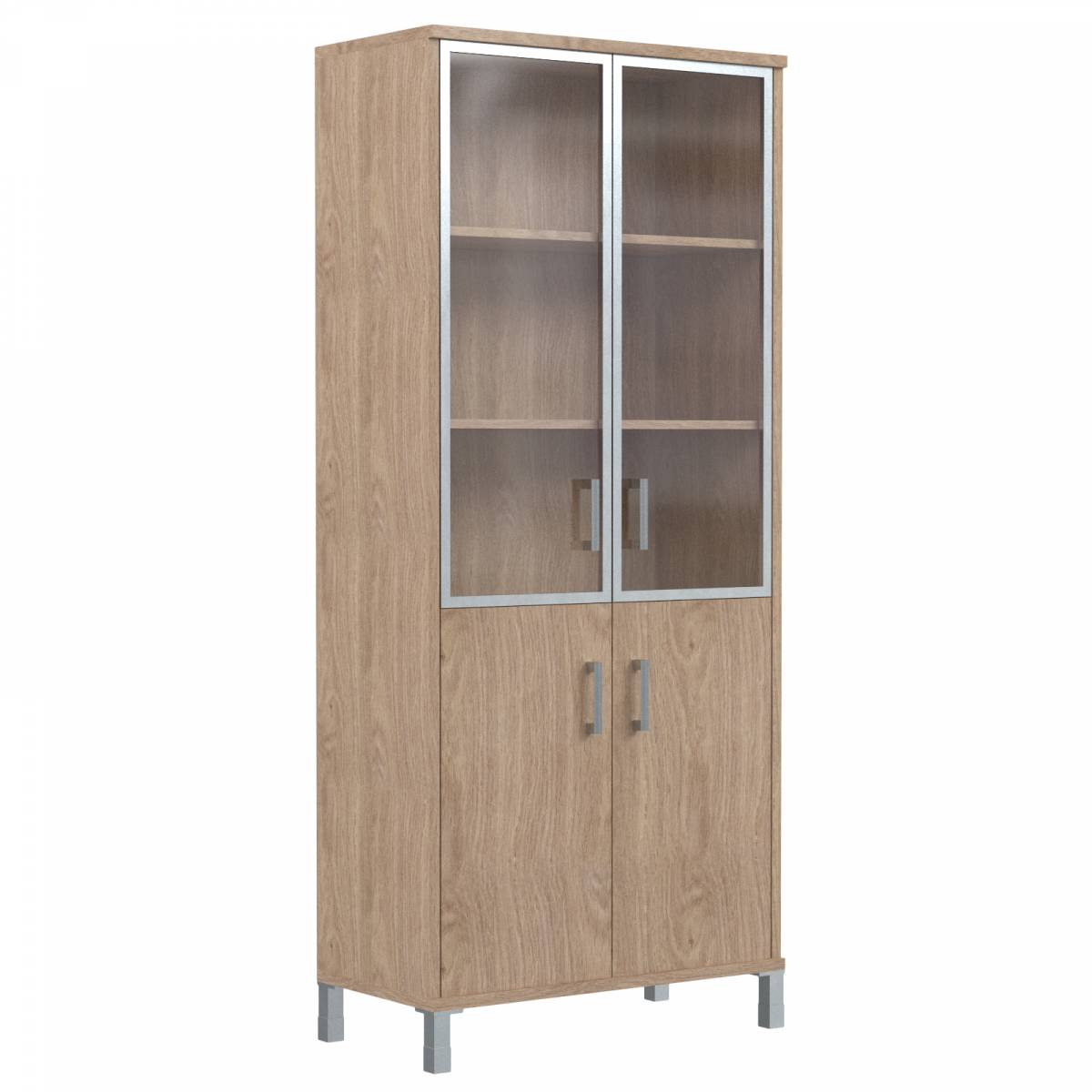 Шкаф средний с малыми стеклянными дверьми в AL-рамке B 420.4 Дуб Девон 900х450х1286